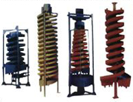 將螺旋溜槽立起,校準(zhǔn)垂直線,用鐵架或木頭固定在合適的位置,由砂泵將礦砂送到螺旋上頂兩個(gè)進(jìn)料口處,加入補(bǔ)充水,調(diào)節(jié)礦槳濃度,礦槳自然從高往下旋流,在旋轉(zhuǎn)的斜面流速中產(chǎn)生一種慣性的離心力,以礦砂的比重、粒度、形狀上的差異,通過旋流的重力和離心力的作用,將礦與砂分開,精礦流入精礦斗用管道接出,尾砂流進(jìn)尾砂斗用管道接到砂池,再用砂泵排走,完成了選礦的全過程。